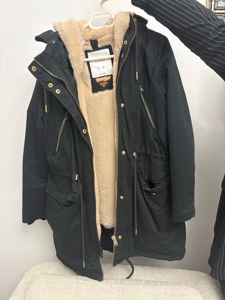Siyah Peluş Astarlı Kadın Kaban pull and bear