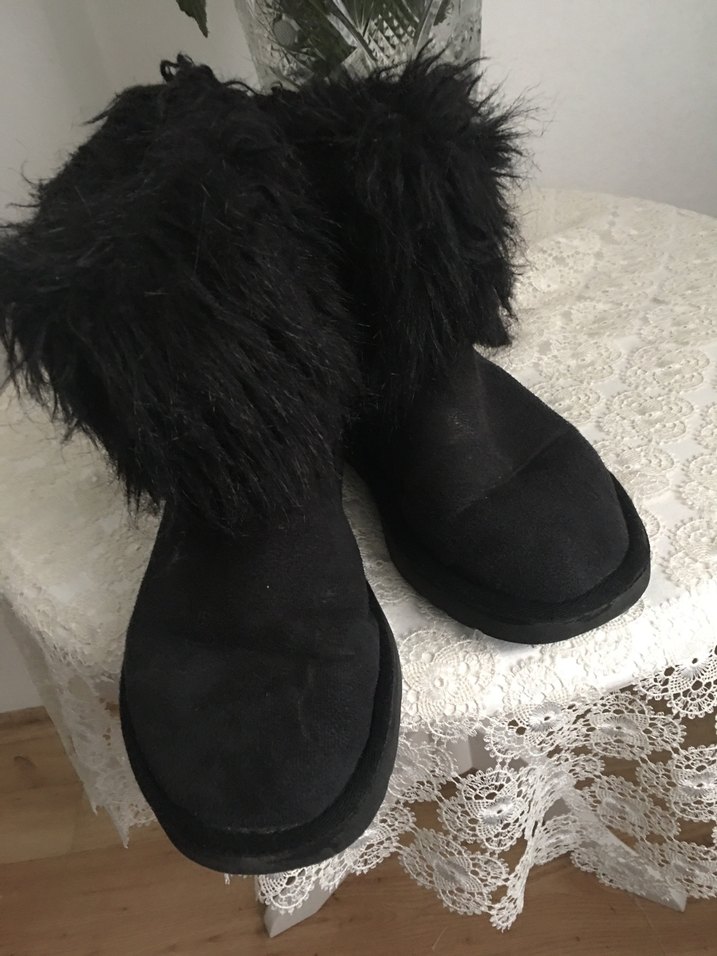 2 no foto sağdaki topuk taraf az hasar oluştu yapıştırdım fiyata yansıtım kulanıma sorun yok üste az suet boya sürülebilir az beli oluyor Küçük geldi ince çorapla kullandım arkada ezilme oldu iç komple peluşlu hafif taban günlük kullanılabilir Taban Ses yapmaz içi temiz hasar yok Yumuşak peluş malzeme ve kürk detaylı, dolgu topuklu siyah kadın botları, rahat ve gotik tarzda .