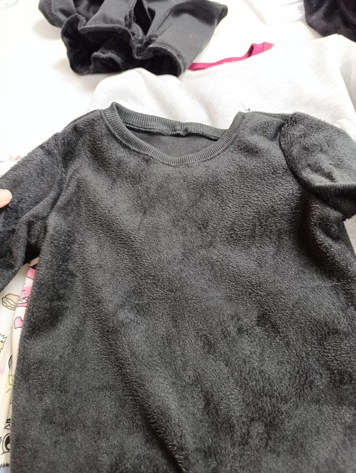 Siyah peluş kumaştan, uzun kollu ve yuvarlak yakalı kadın sweatshirtü. Rahat kesimi ve kürk detaylarıyla sıcak tutar.