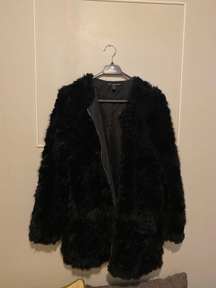 Siyah, kürk detaylı peluş kumaştan yapılmış, uzun kollu ve yakalı midi boy kadın kaban. Günlük kullanıma uygun, rahat ve şık bir goth tarzı parça. Az kusurlu olan bir üründür .