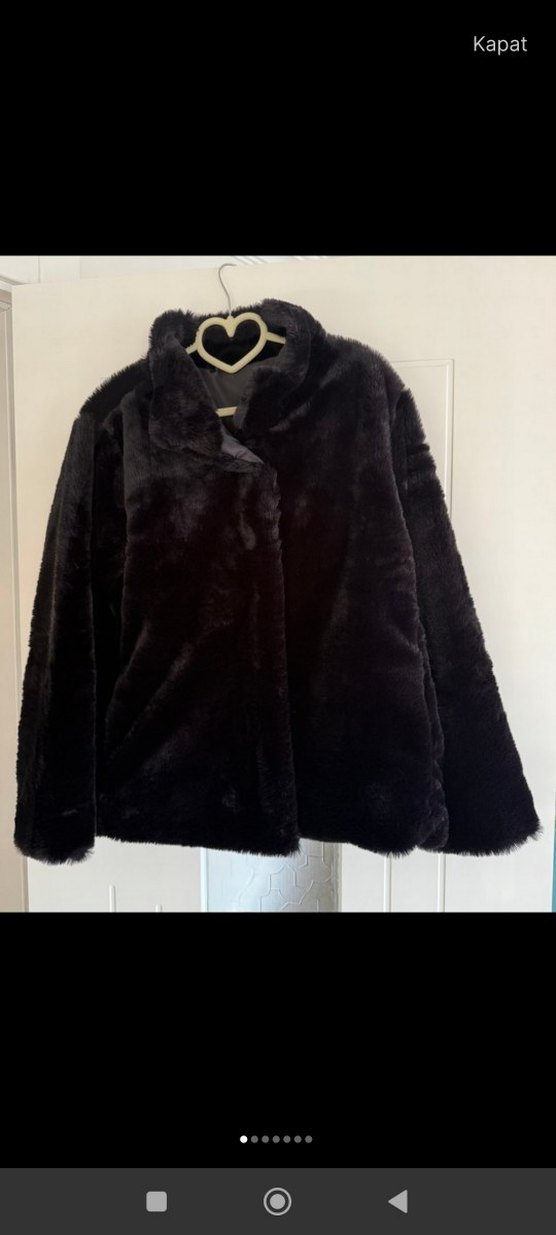 Siyah peluş kumaştan, notalı yaka ve uzun kollu, midi boyda, bol kesim kadın kürk ceketi. Rahat ve şık bir görünüm sunar. 55cm boy 56 en Etiketinde 42 yazıyor ama 38 e daha iyii olur