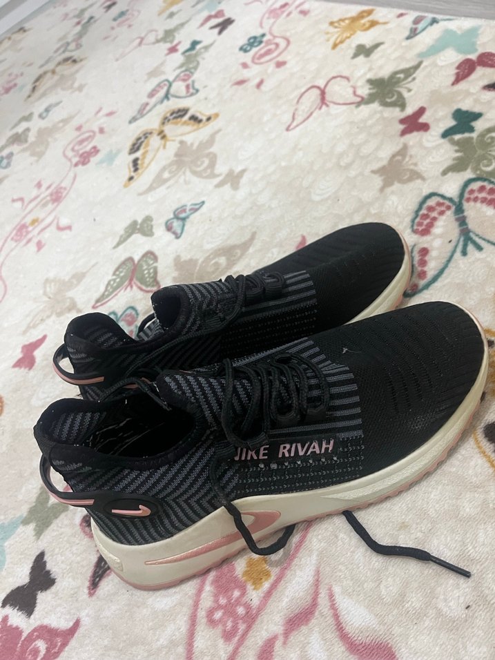 Bağcıklı ve rahat bez alt tabanı çok siyah pembe karışım kadın spor ayakkabısı trend sokak stiline uygundur.1 kere giyildi yeni gibi