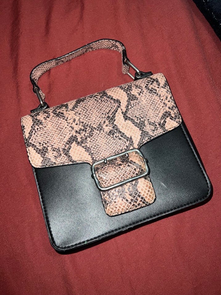 Siyah pembe Deri Yılan Desenli Tokalı Çanta