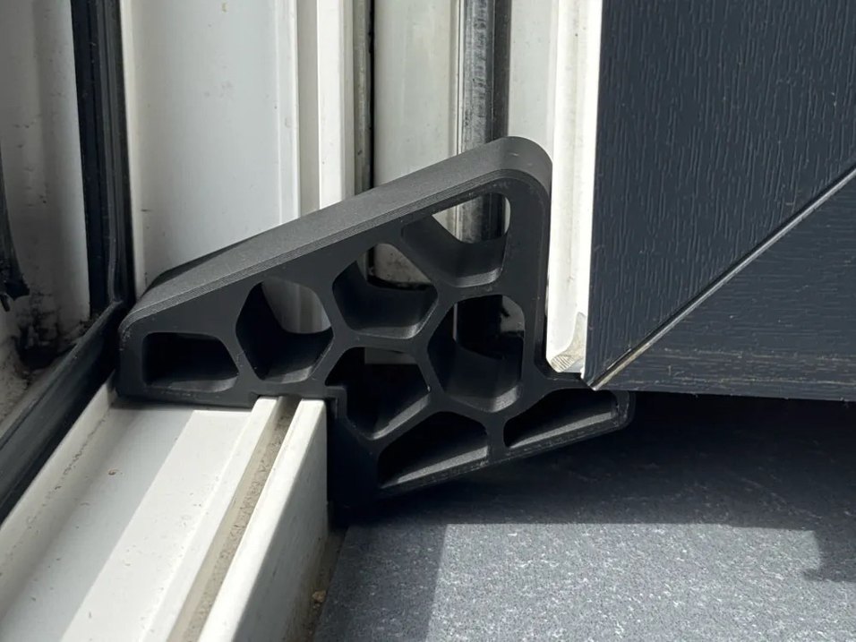 Pencere altına yerleştirilen, bal peteği yapısına sahip siyah telefon tutucu. Dayanıklı ve güvenli destek sağlar.