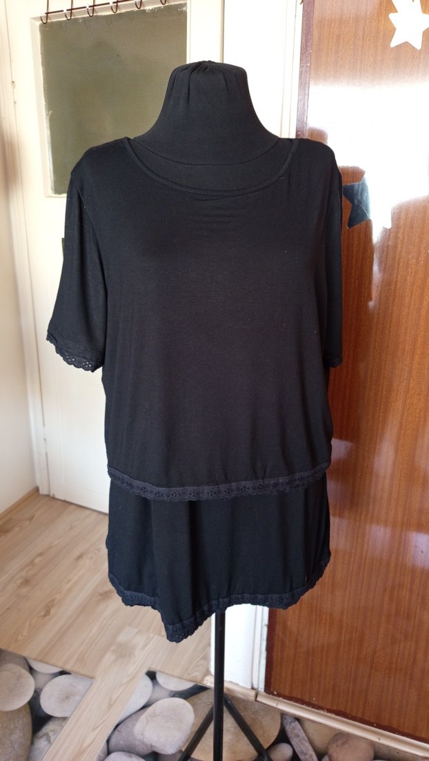 Yumuşak pamuktan, yuvarlak yakalı ve kısa kollu İnce dantel detaylarıyla gündelik goth tarzını yansıtır.