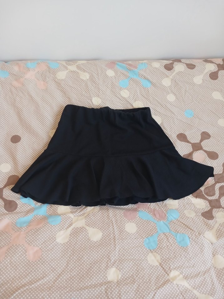 Siyah renkte, pileli ve vücuda oturan şortlu mini etek, kumaşı penye fitilli karışımı bi şey, esnek, beli lastikli, L beden ama beli lastikli olduğu için s ve m bedene de olur. Ama aşırı kısa bilginiz olsun. Bir kere giydim.
