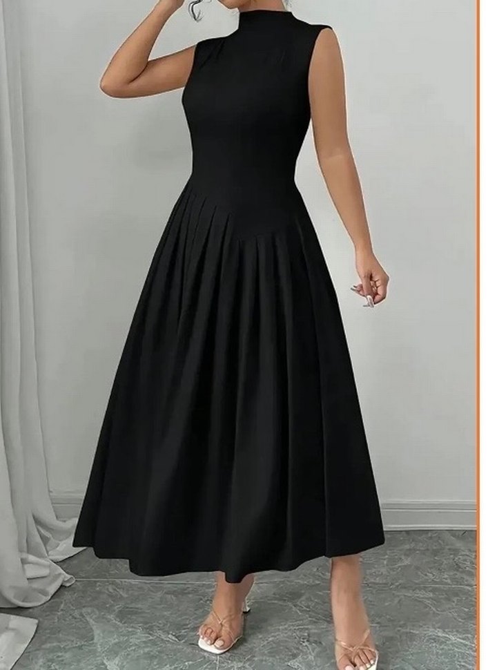 Siyah Pileli Uzun Kolsuz Elbise