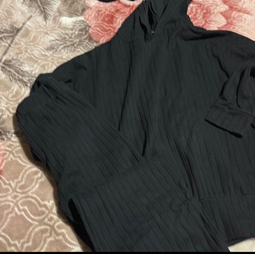 Siyah renkli, pilili ve boğazlı yakalı uzun kollu hamile ceketi. Sentetik kumaştan, rahat ve sokak modasına uygun tasarlandı.