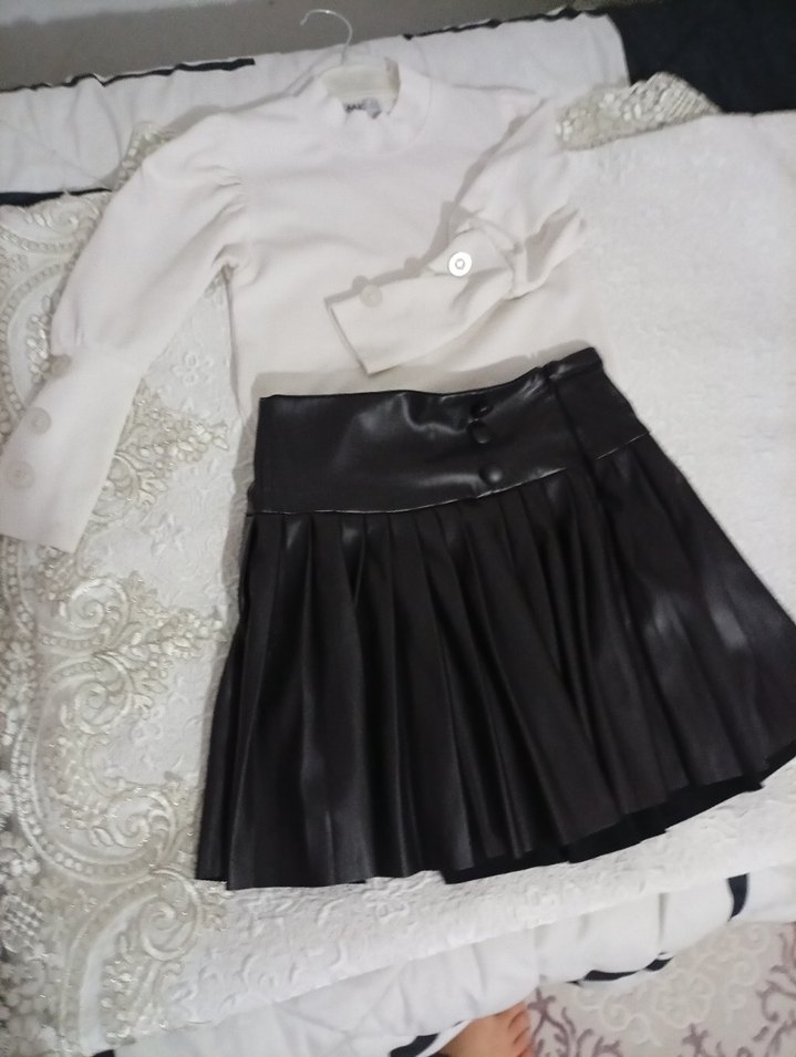 Siyah Pilili Deri Mini Etek