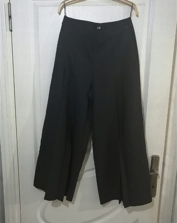 Siyah Pilili Geniş Kesim Kadın Kumaş Pantolon