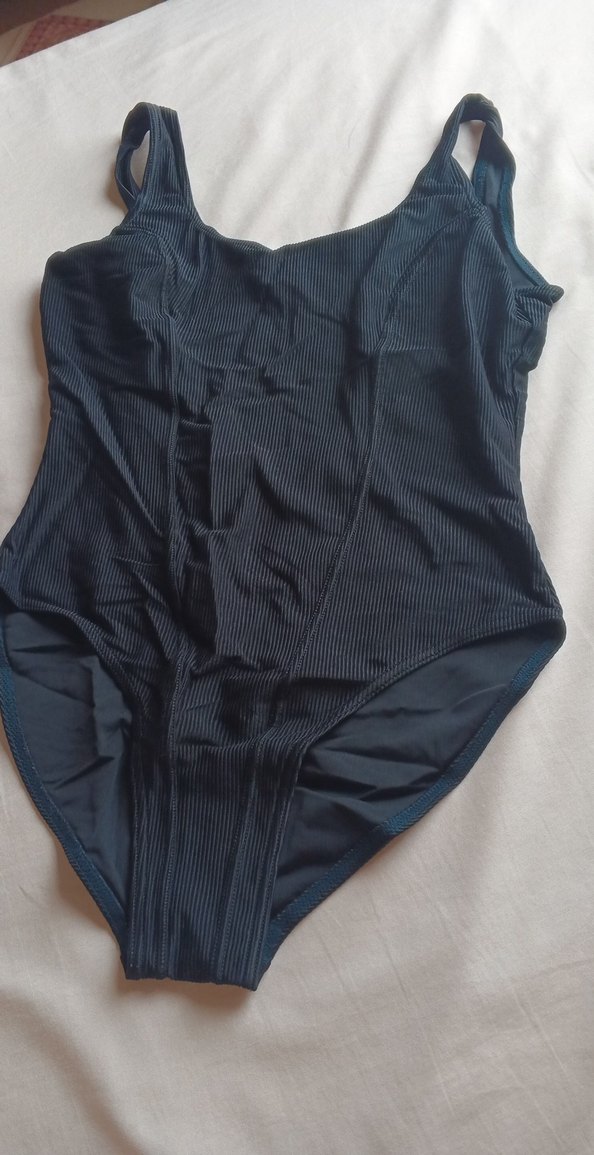 İnce askılı, pilili detaylara sahip siyah, vücuda oturan mayo. Goth tarzı ve midi boy, desensiz, dış mekan kullanımı için uygundur. 36 44 bedene kadar olur