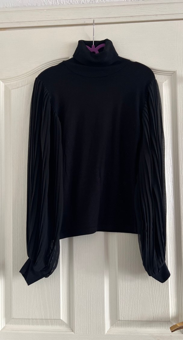 Siyah kumaştan yapılmış, ofise uygun gotik tarzda dar kesim kadın bluz.kolları pilili tül detaylı abiyedir bihter karakterinin giydiği kıyafetlerden