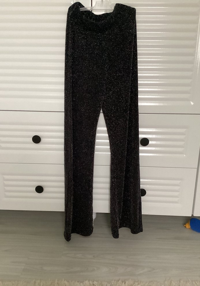 Siyah, uzun ve pilili kadın kumaş pantolon, ofis kullanımı için uygun, düz ve şık bir tasarıma sahiptir. Likralı kumaştır.