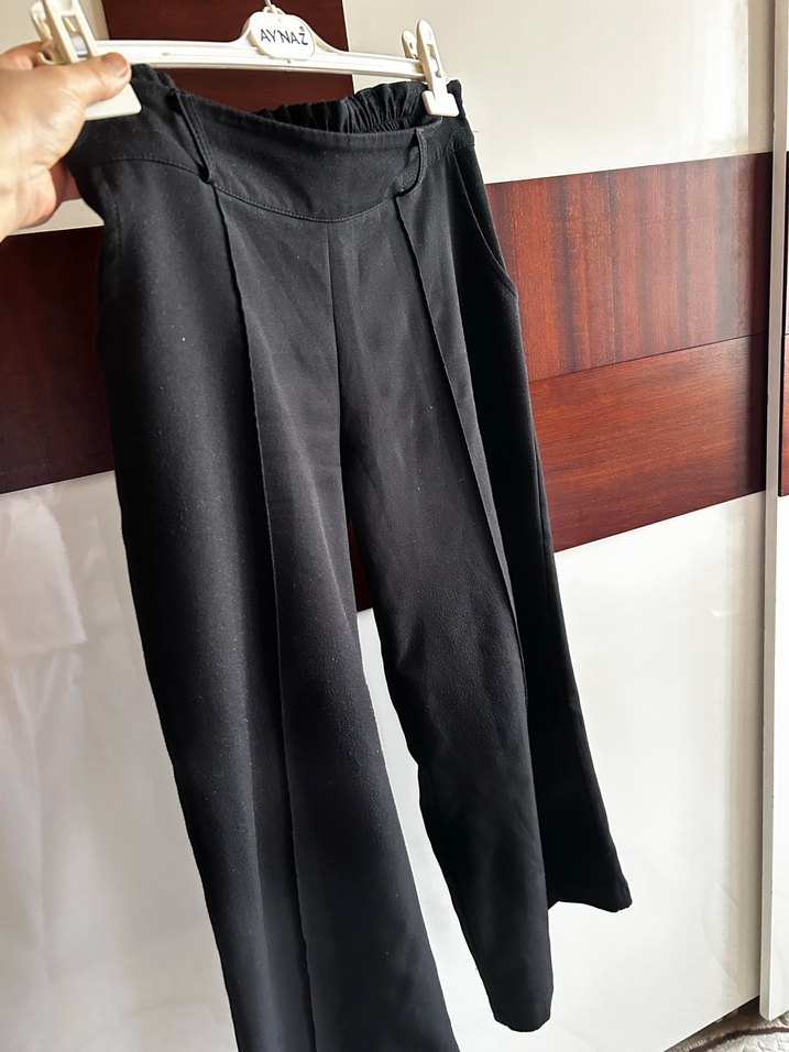 40.42 ye uygun çok inceden tüketme var yakından belli oluyor yarım lastiği var cepli geniş paça yırtık sökük yok Kadınlar için siyah, midi boy, pilili kumaş pantolon. Normal kesim ve ipeksi kumaştan, ofis için uygun minimal ve normcore tarzda.