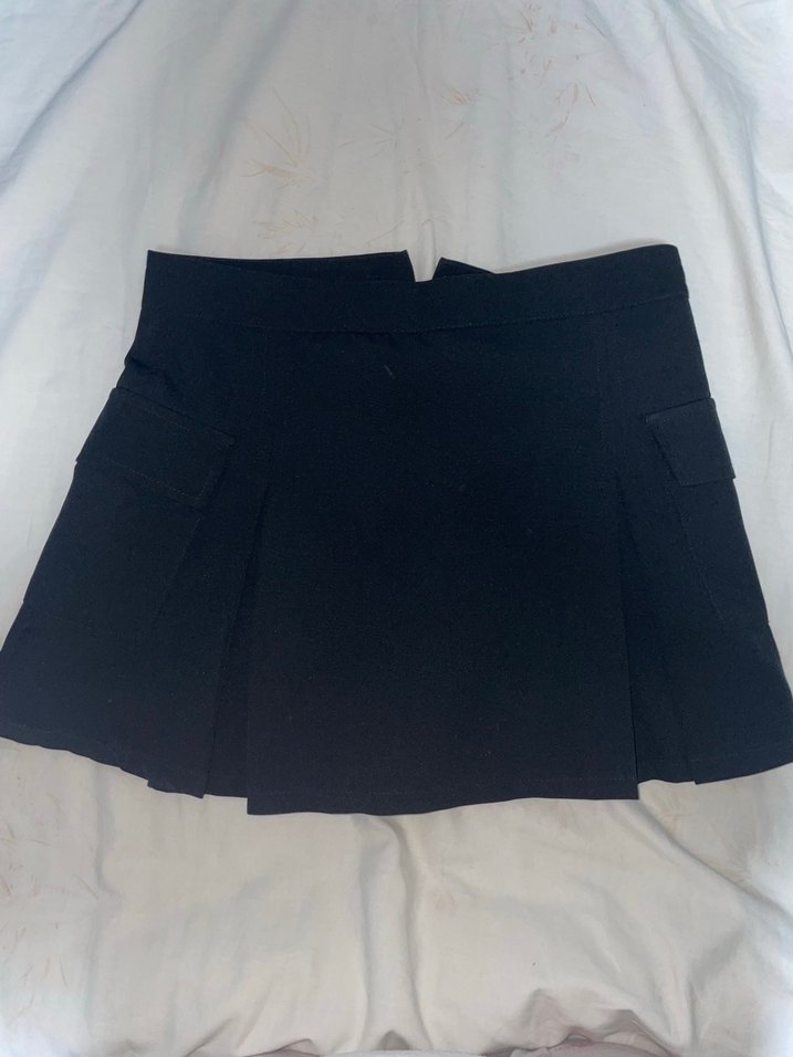 Siyah Pilili Kadın Mini Etek