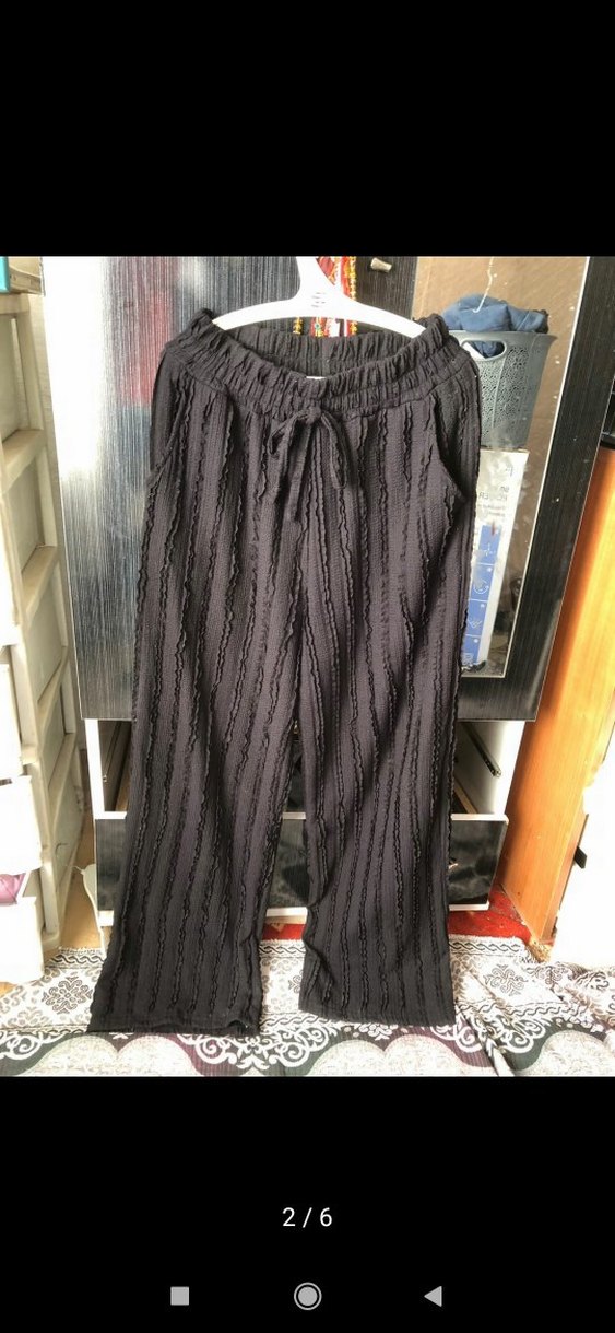 Siyah keten, pilili ve midi boy kadın pantolon, rahat kesimiyle günlük kullanıma uygundur. ✨