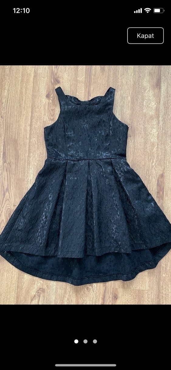 Kolsuz, yüksek yakalı siyah gece elbisesi, pilili midi etek ve klasik gotik tarzda