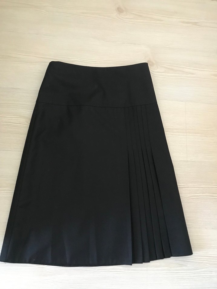 ipeksi kumaş ve düzenli kesime sahip. Pilili tasarımı ve midi boyu ile ofis ortamına uygundur, sade ve temel bir tarza sahiptir.