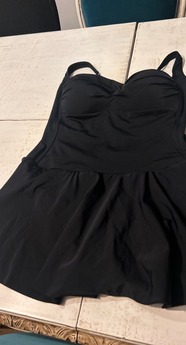 Siyah, pilili midi etekli, askılı ve vücuda oturan gotik tarzda kadın mayosu, günlük kullanım için uygundur.
