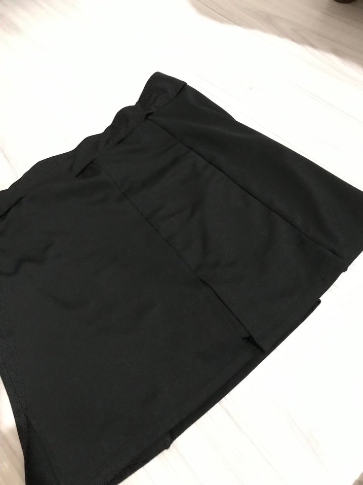 Siyah pilili midi etek, sentetik kumaştan ve vücuda oturan kesimde. Ofis kullanımı ve minimalist sokak stiline uygundur.