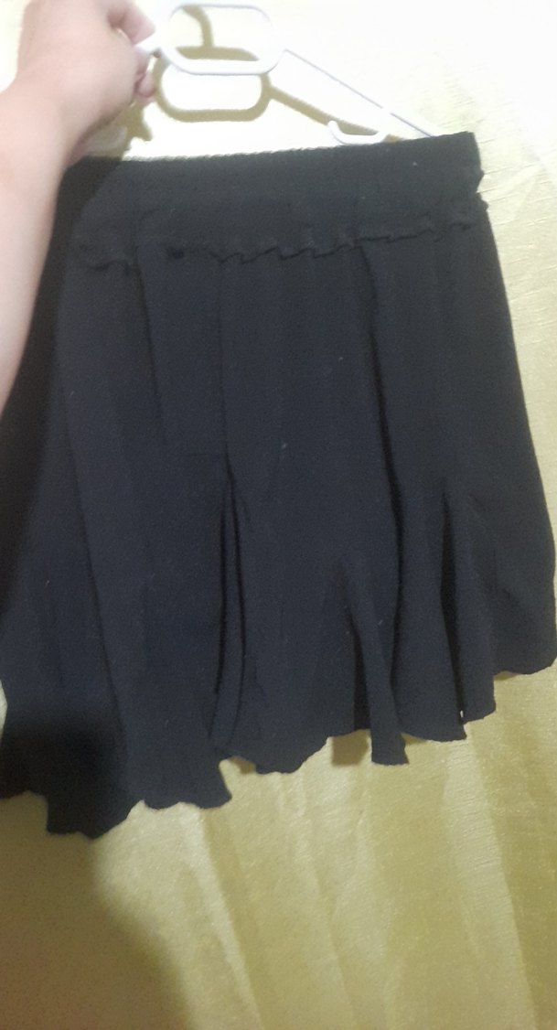 Siyah midi etek, pilili ve bol kesimdir. Düz, minimalist gotik tarzda, sentetik kumaştan üretilmiştir. Günlük kullanıma uygundur.