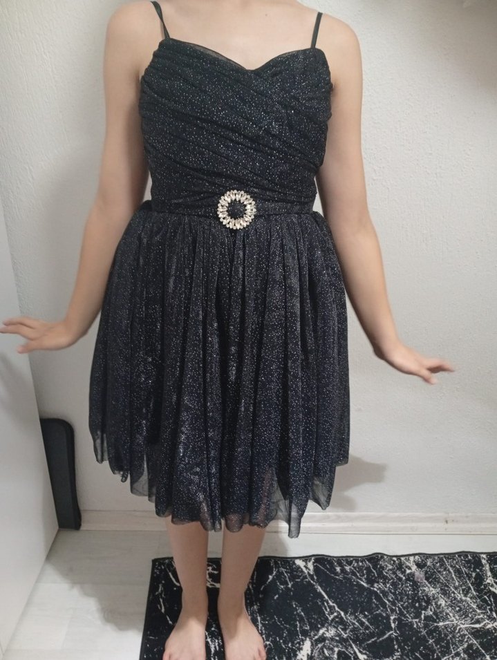 Siyah Pilili Midi Straplez Parti Elbisesi