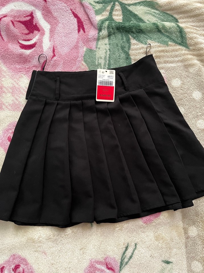 Siyah, pilili ve vücuda oturan mini etek, yumuşak sentetik kumaştan yapılmıştır. Minimalist ve goth tarzlara uygun sade tasarıma sahiptir.