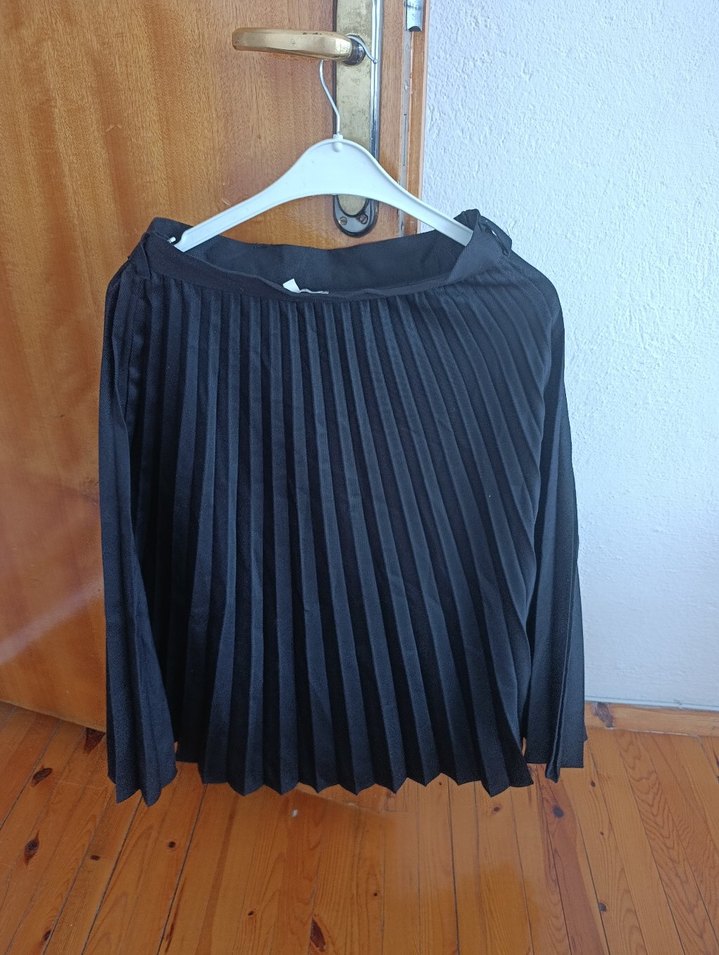 Siyah renkte, pilili ve bol kesim mini kadın eteği. Sentetik kumaştan üretilmiş, günlük kullanım için uygundur. Goth ve Parisli avant-garde tarzını yansıtır.