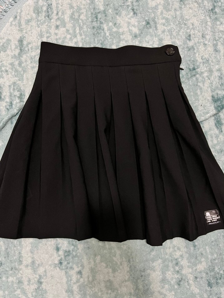 Siyah, pilili ve mini boyda, sentetik kumaştan üretilmiş, Gotik tarz için uygun, günlük kullanıma ideal.