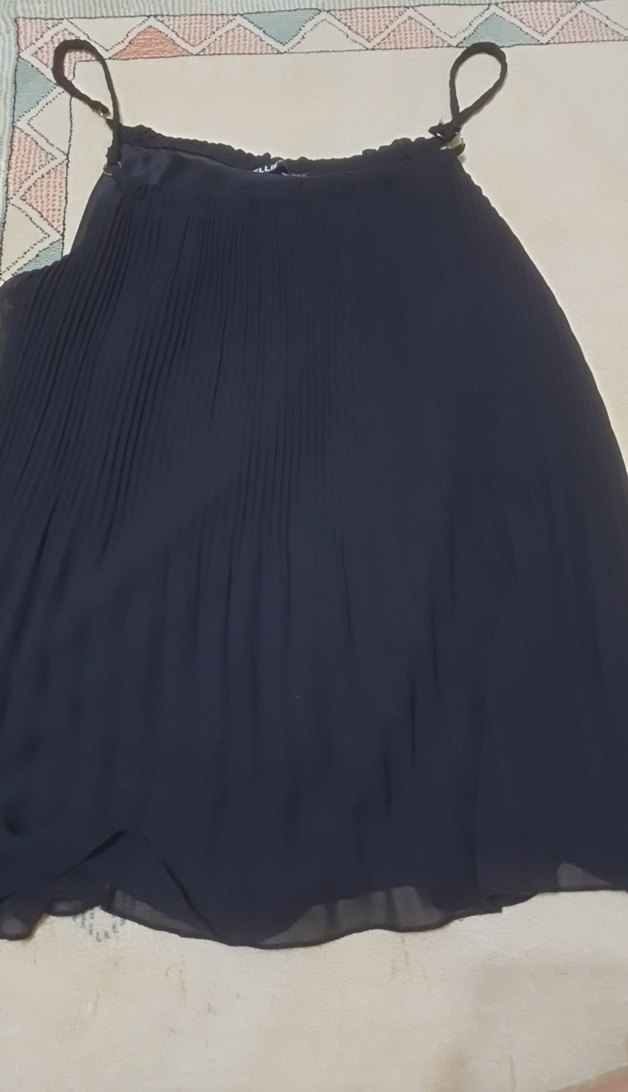 Siyah renkte, sentetik kumaştan yapılmış pilili sıfır kollu. Ofis kullanımı için uygun, gotik Paris tarzında.