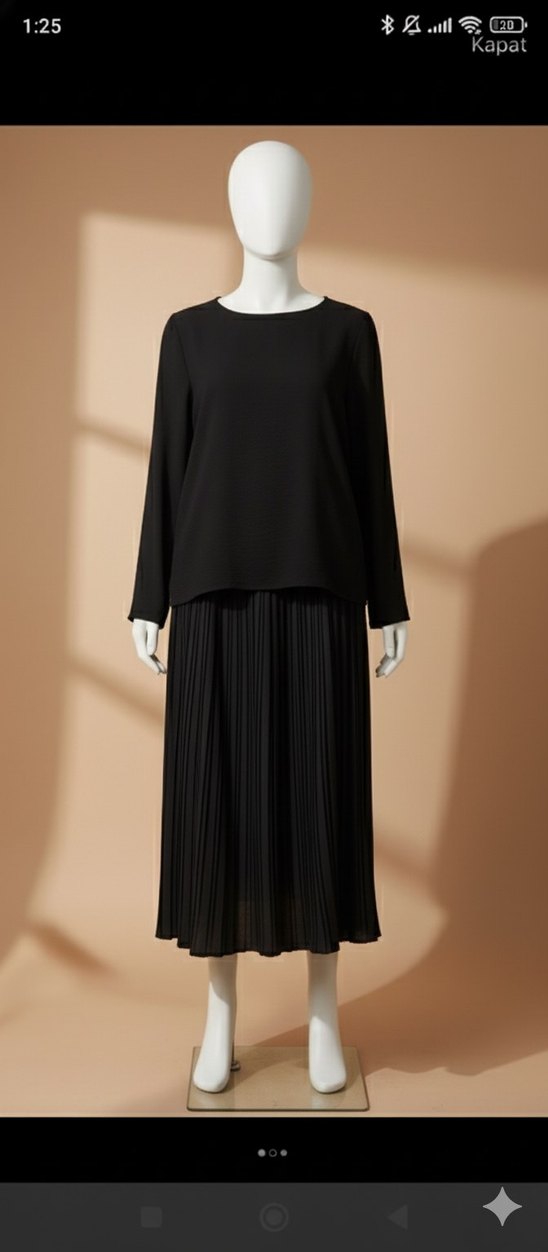 Siyah renkte, pilili ve bol kesim uzun etektir. Modest tarza ve günlük kullanıma uygundur.