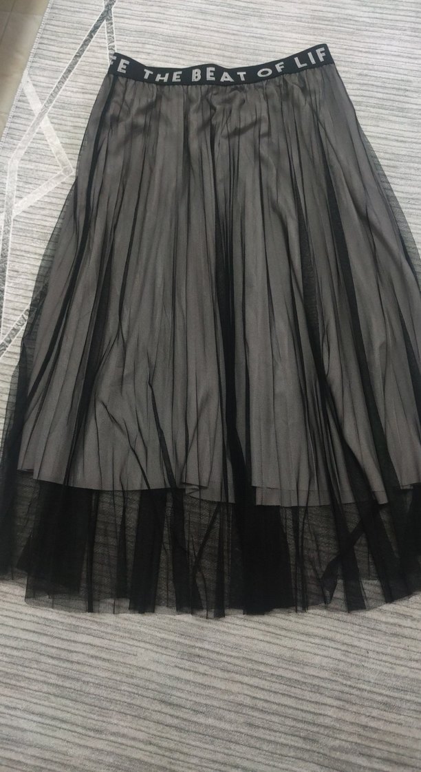Sentetik kumaştan yapılmış, pilili ve tül detaylı siyah uzun, vücuda oturan gotik etek. Parti için uygun. ara boy hiçbir sıkıntısı yok