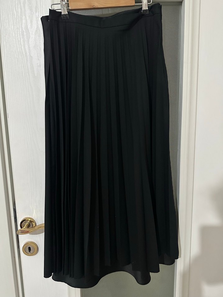 Siyah renkte, pilili ve bol kesim uzun kadın eteği, ipeksi kumaştan üretilmiştir. Goth ve Parisian tarzını yansıtır, ofis kullanımı için uygundur.