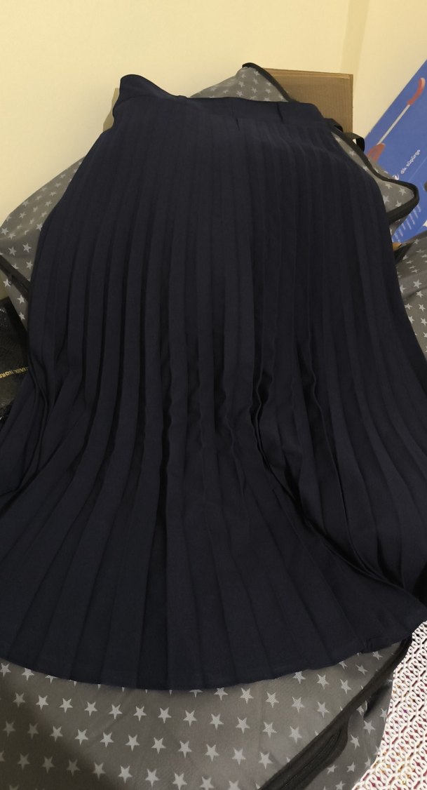 lacivert Pilili Uzun Kadın Etek