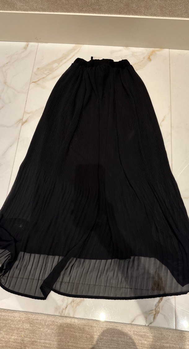 Siyah renkte, pilili detaylı ve bol kesim uzun etek. Sentetik kumaştan yapılmıştır, gotik tarzı yansıtır ve günlük kullanıma uygundur.