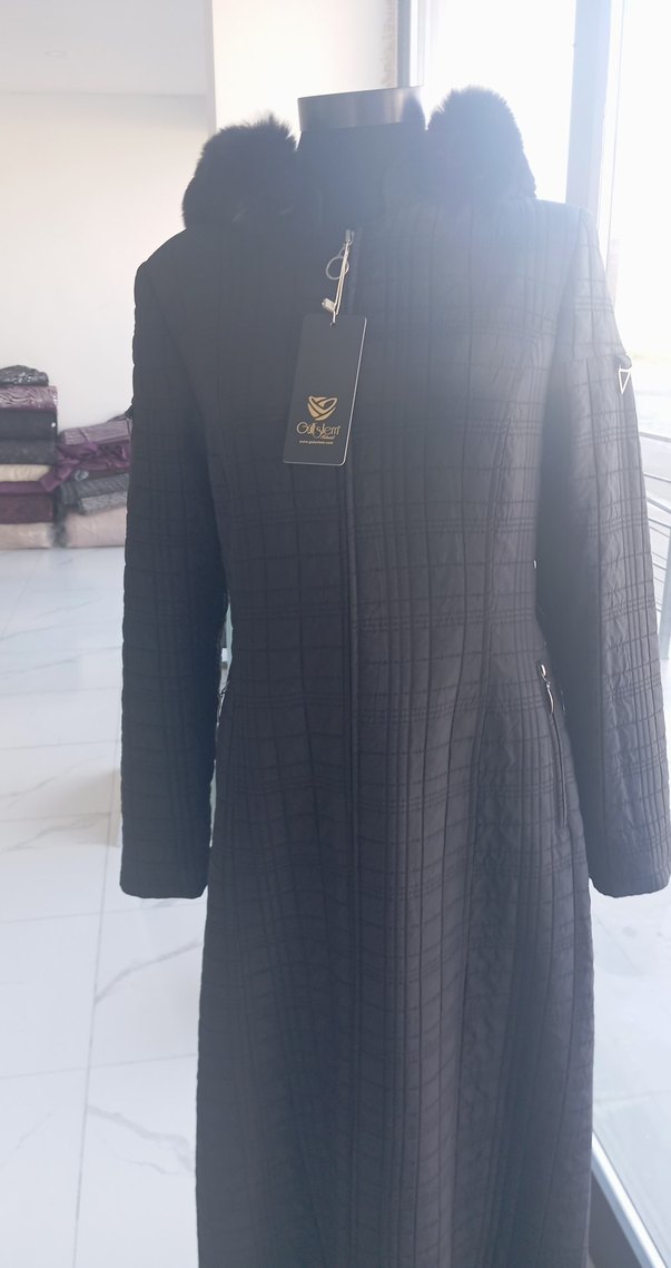 Siyah Pilili Uzun Kadın Kaban