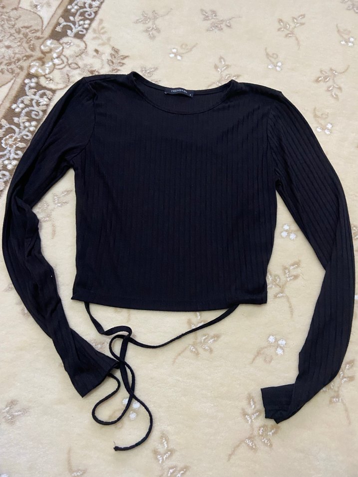 Siyah Pilili Uzun Kollu Kadın Bluz