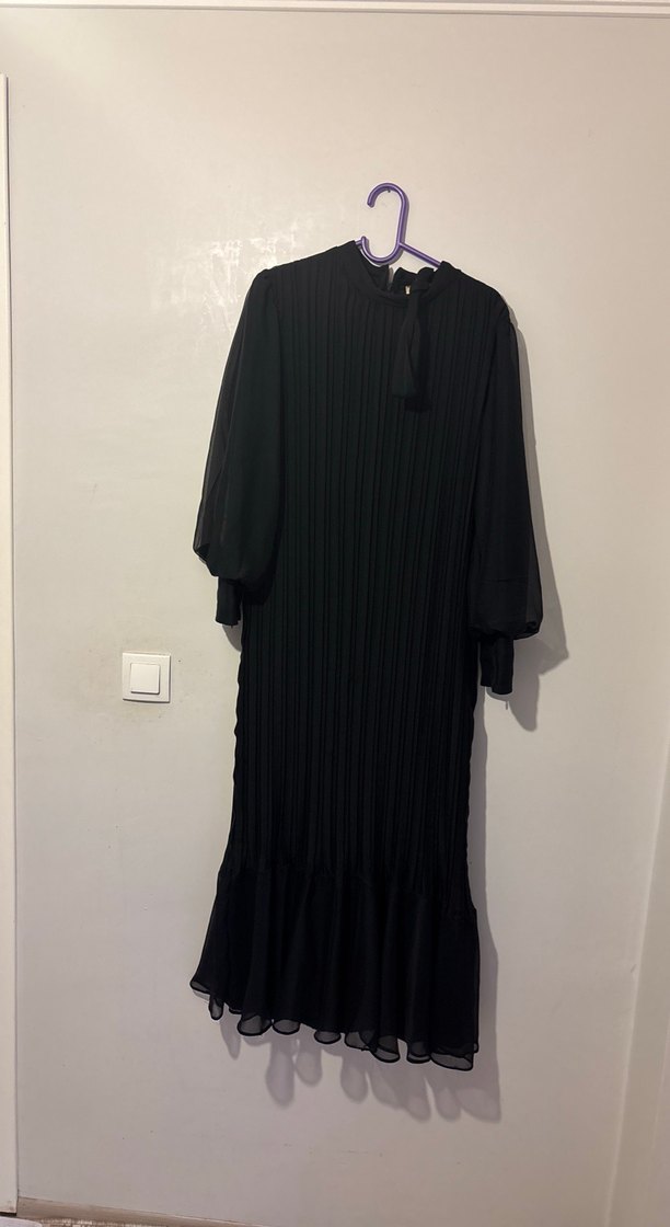 Siyah Pilili Uzun Kollu Uzun Elbise