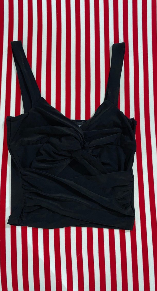 Siyah renkli, pilili detaylara sahip, v yaka ve askılı, mini uzunlukta, oturan kesim bustiyer. Yumuşak sentetik kumaştan üretilmiştir.