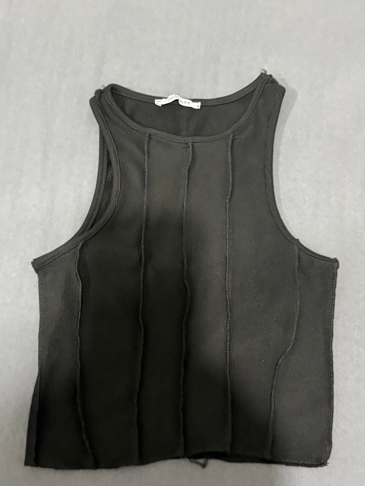Siyah, yüksek yakalı ve pilili detaylara sahip, sentetik kumaştan yapılmış kadın atlet, günlük kullanım için uygundur. Ürünü sadece iki kez giydim butikten 400 TL’ye almıştım
