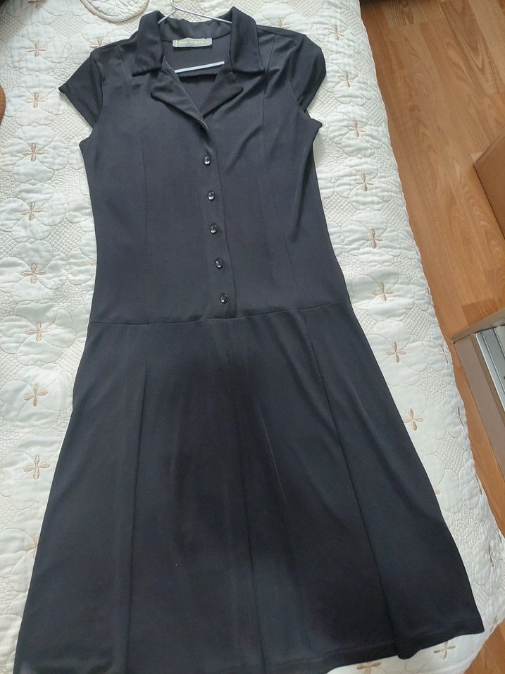 siyah, düğmeli elbise. esnek ve dokumlu kumas