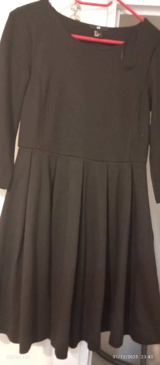 Uzun kollu, bisiklet yaka ve piliseli etek detaylı siyah, klasik ve şık kesim midi elbise.