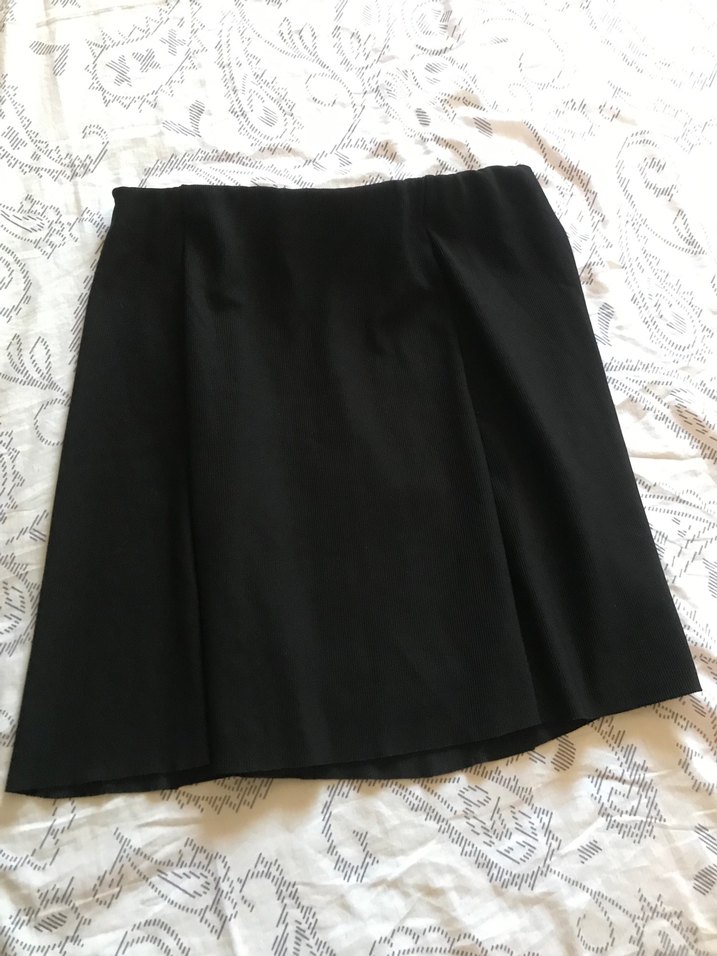 Siyah, piliseli ve midi boy bol kesim ve ipeksi kumaştan üretilmiştir. Ofis için uygundur, gotik tarzda.