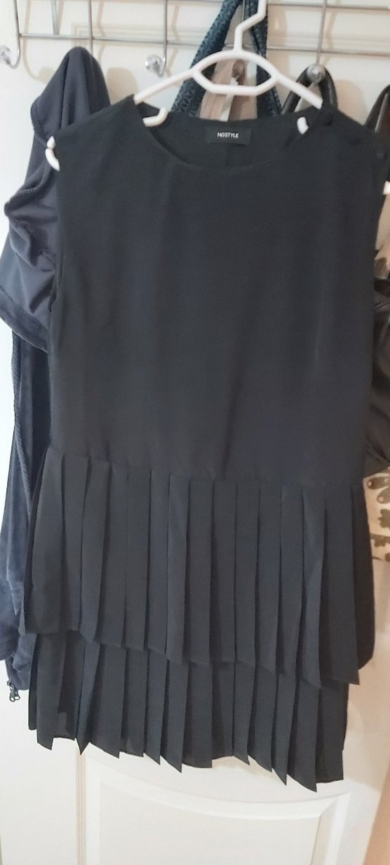 Siyah piliseli midi etek, bol kesim ve sentetik kumaştan yapılmıştır. Cesur, gotik stili yansıtır ve günlük kullanım için uygundur.