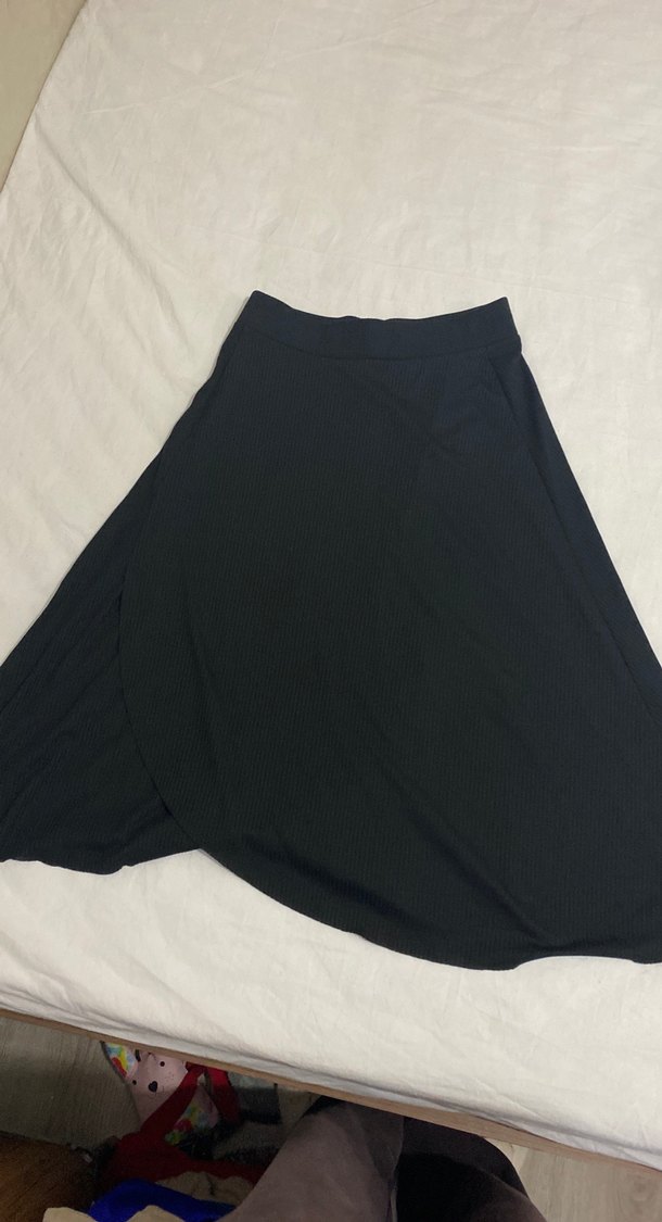 Siyah piliseli midi hamile eteği, bol kesim ve rahat sentetik kumaştan yapılmıştır. Günlük kullanım için uygundur.