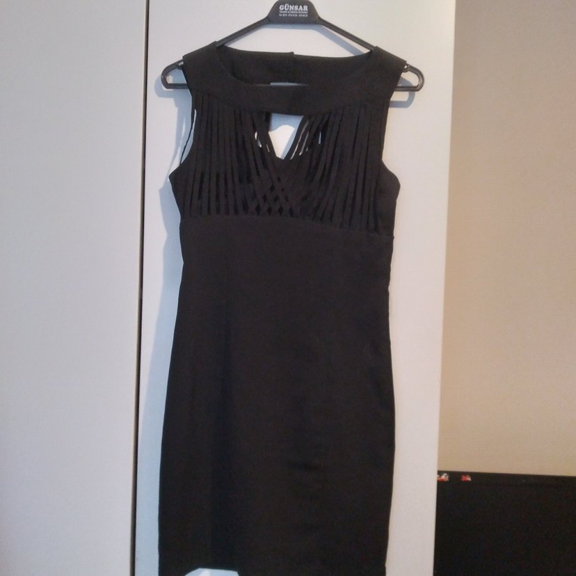 Bu siyah midi elbise, piliseli V yaka ve askılı detaylarla gotik tarzda, romantik akşamlar için uygun, vücuda oturan kesime sahiptir.