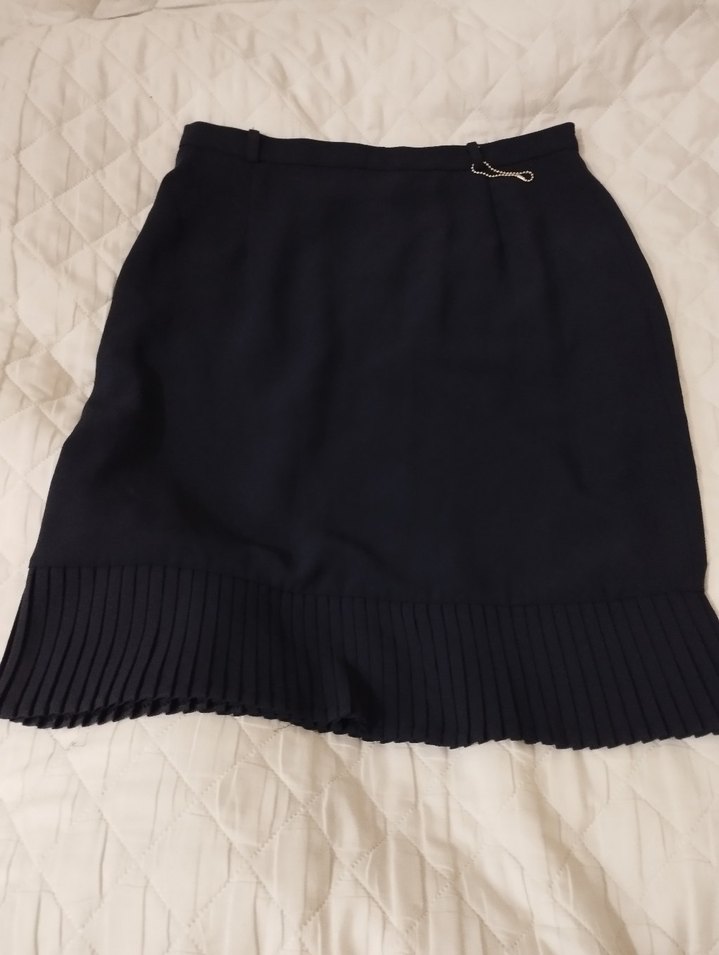 Siyah renkli, piliseli etek ucu ve bol kesimiyle, sentetik kumaştan mini etek. Ofis için goth ve Paris tarzını yansıtıyor.