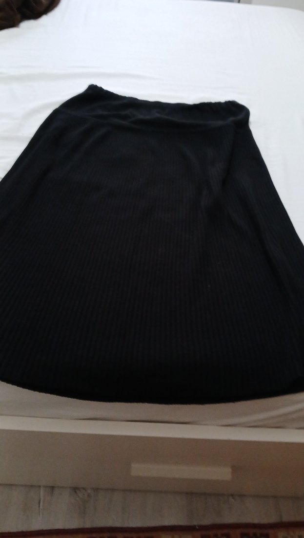 Siyah, piliseli ve bol kesim uzun etek, sentetik kumaştan üretilmiştir. Minimalist gotik tarzda, günlük kullanıma uygundur.