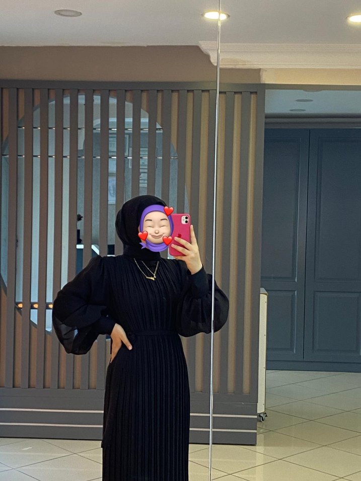 Siyah Piliseli Uzun Kollu Tesettür Elbise