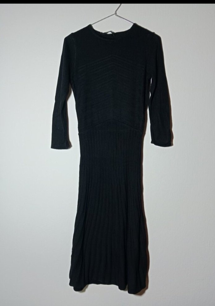 Siyah Piliseli Uzun Triko Elbise